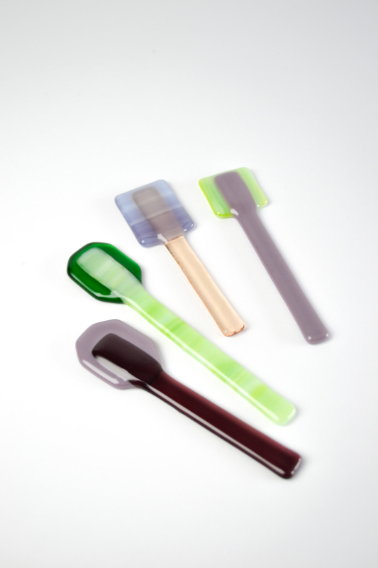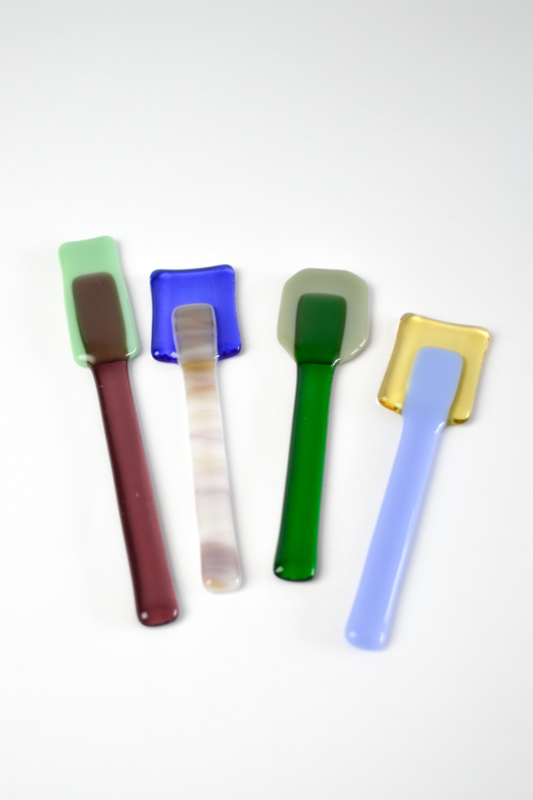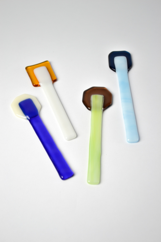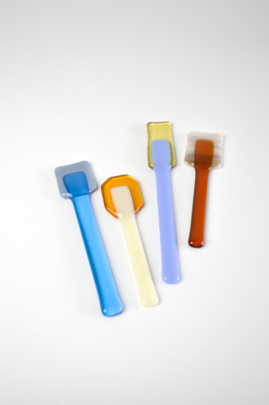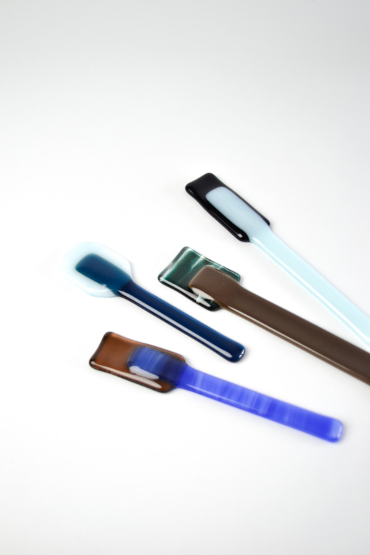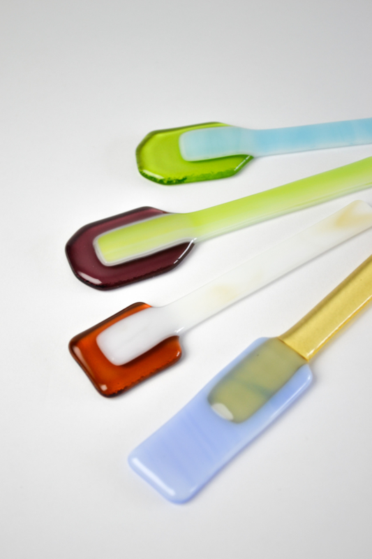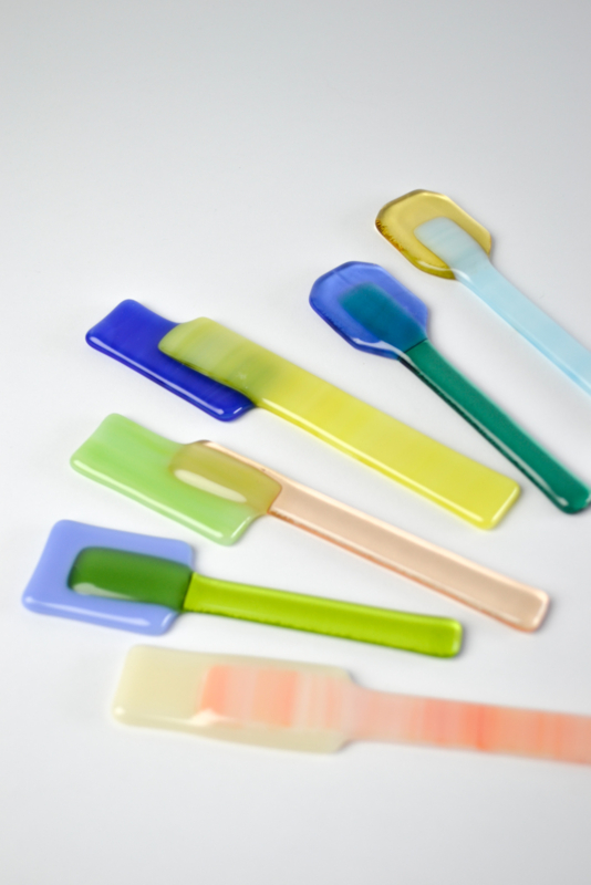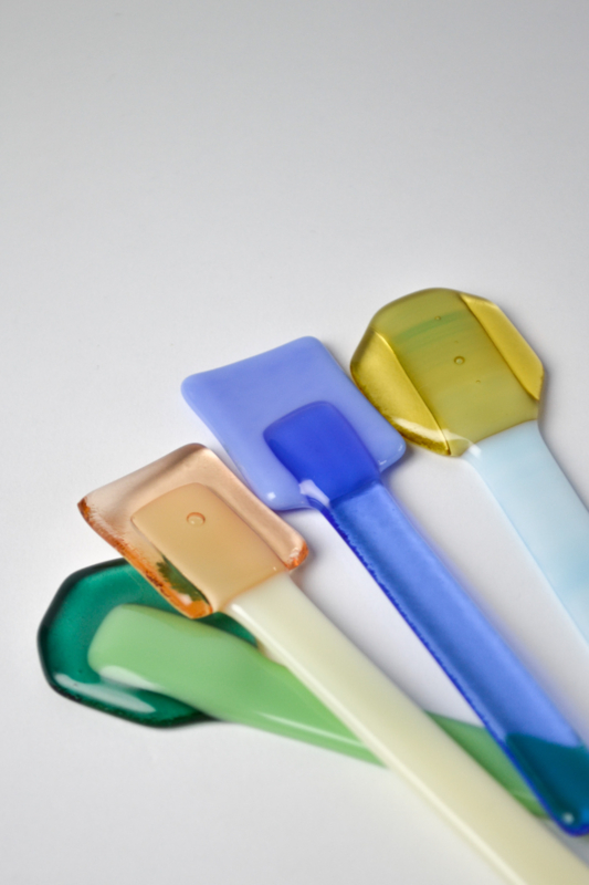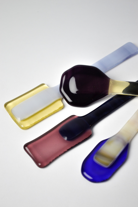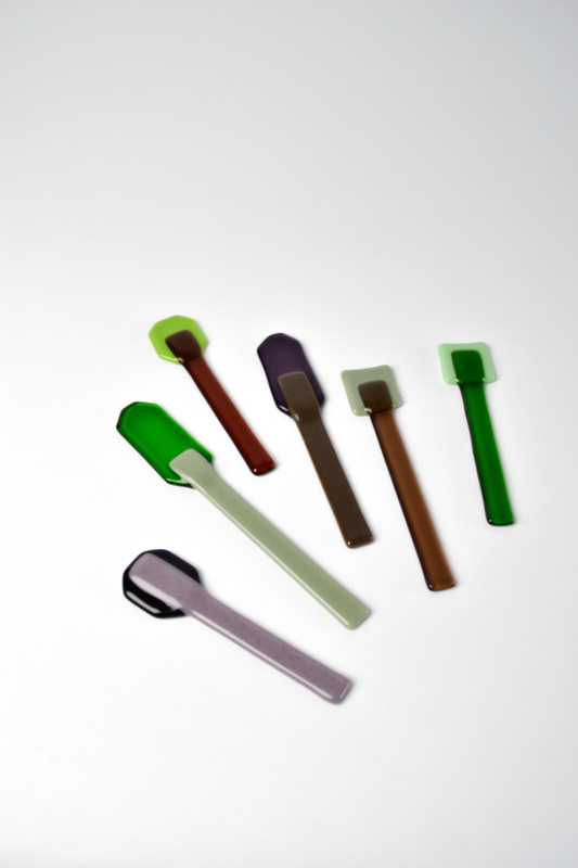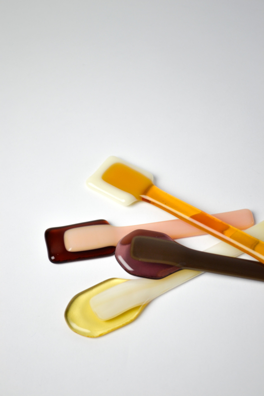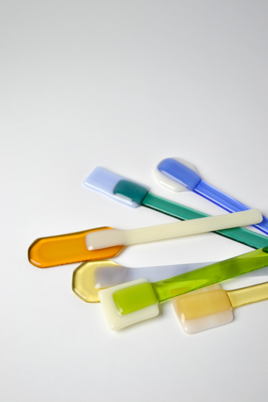 Glass spoons to scoop and to stir. The lollys are used for colorful charcuterie boards or to stir your coffee or tea with. All handmade in the Netherlands. ------------------