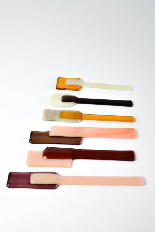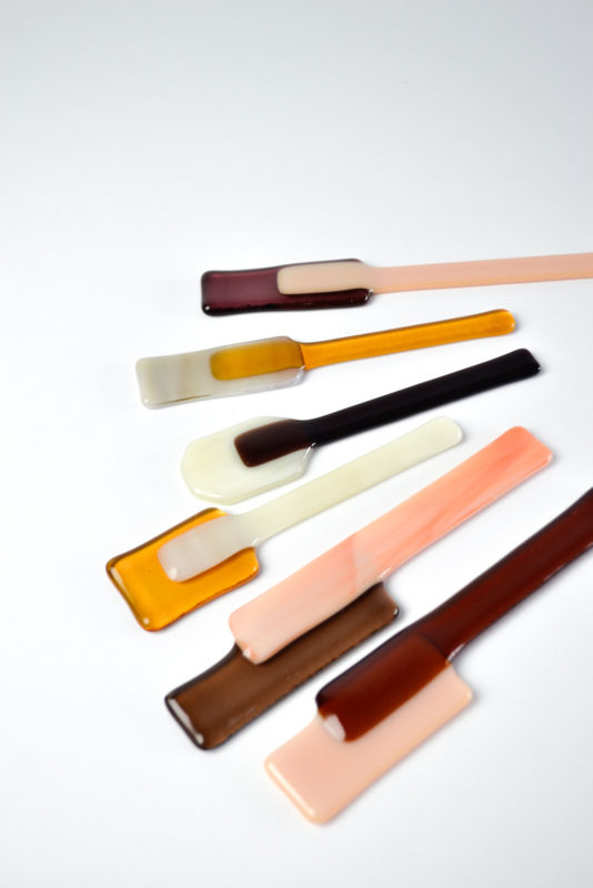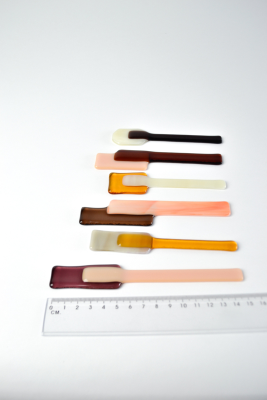 Glass spoons to scoop and to stir. The lollys are used for colorful charcuterie boards or to stir your coffee or tea with. All handmade in the Netherlands.