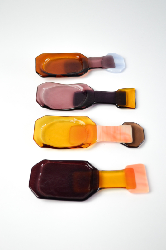 Glass amuse spoons for fancy dinners. The spoons are like jewelry on the table and are all unique pieces. All handmade in the Netherlands