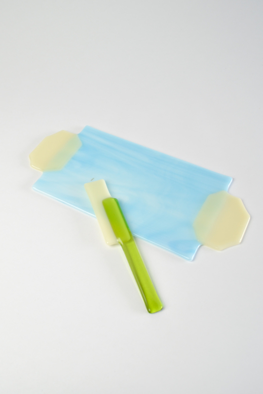 De plateaus uit de GEMS-collectie zijn echte eyecatchers voor op tafel en stuk voor stuk uniek. Gebruik het bordje voor een blok boter (of zachte kaas) met het matchende botermes. Handgemaakt in Nederland.
