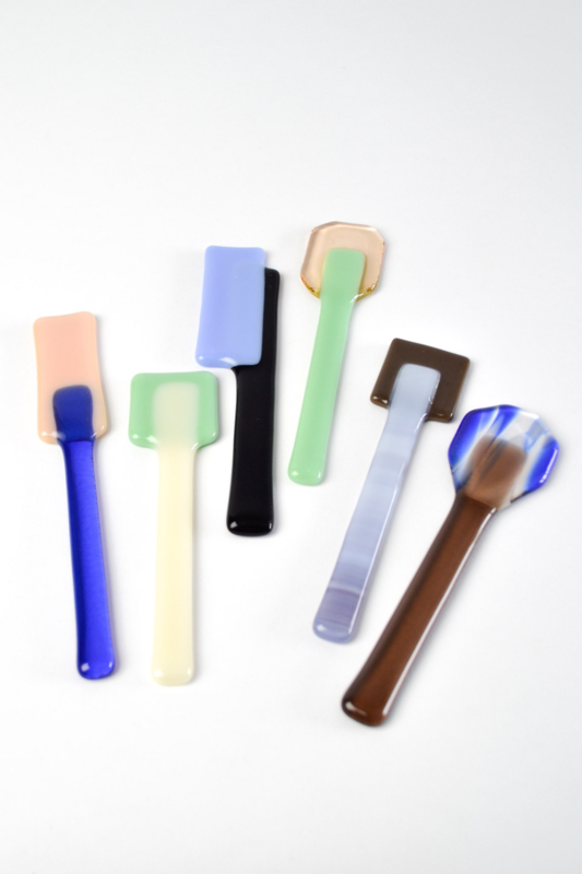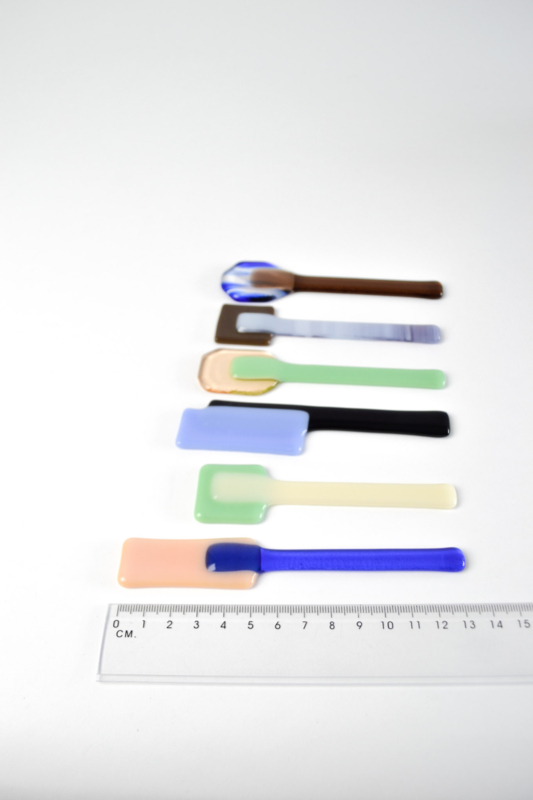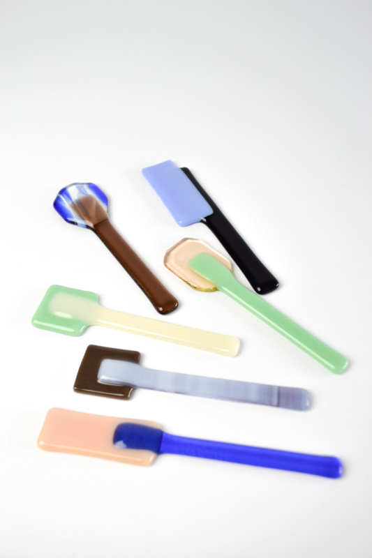 Glass spoons to scoop and to stir. The lollys are used for colorful charcuterie boards or to stir your coffee or tea with. All handmade in the Netherlands.